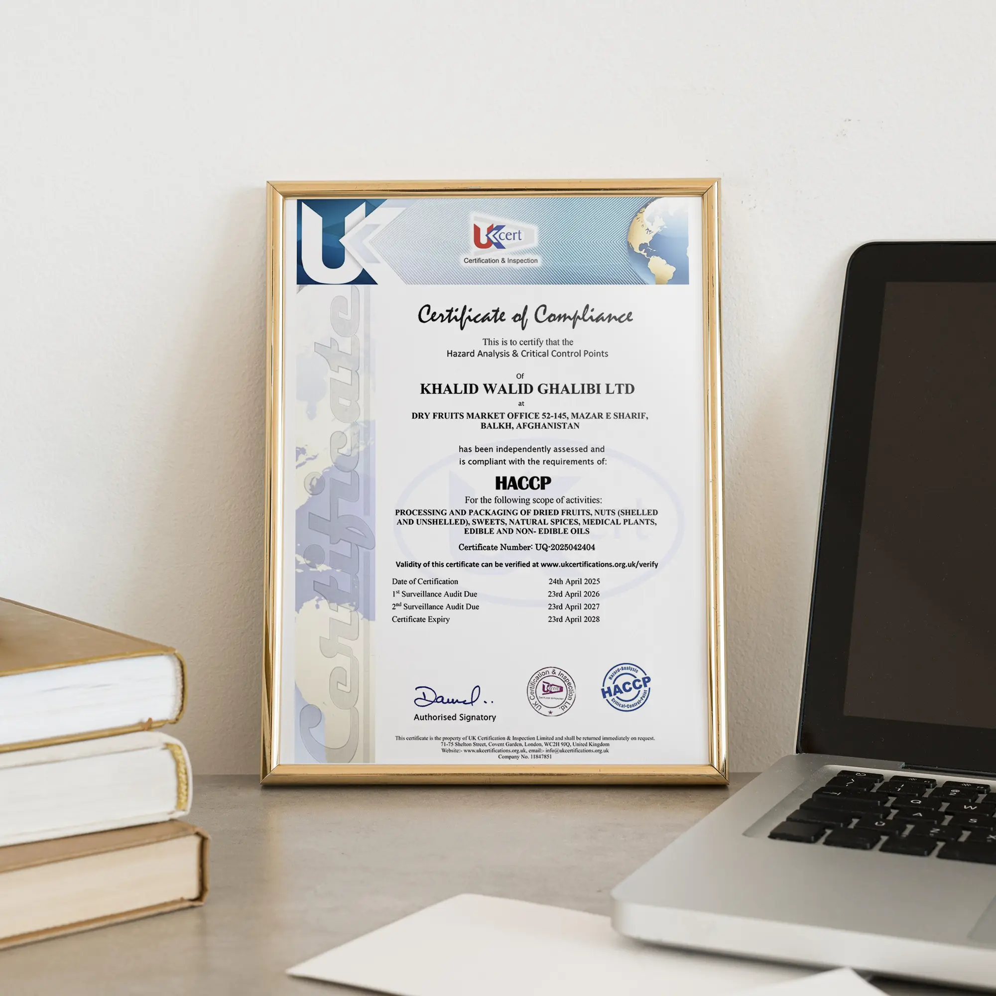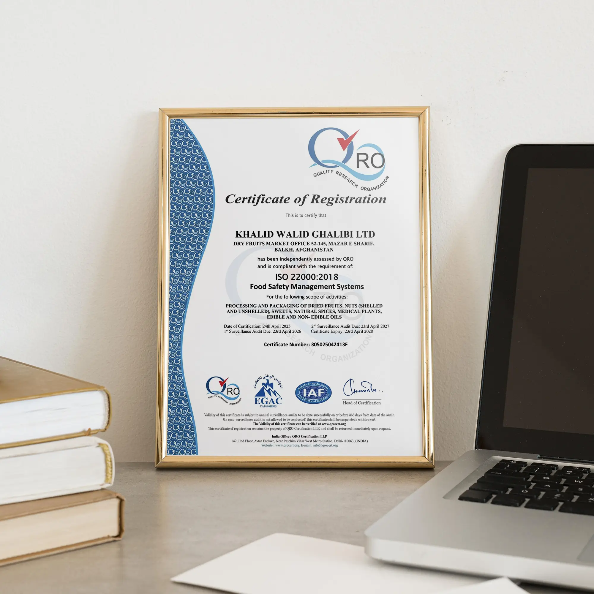 Khalid Walid Ghalibi Company Ltd is one of the leading companies in the field of production, processing and export of Afghanistan’s dried fruits. This company works with the aim of improving the quality of domestic products and access to international markets. Exporting to Europe, America, focusing on high quality, and adherence to global standards are among our priorities. In addition, the company plans to provide employment opportunities for more people in Afghanistan by developing its activities.